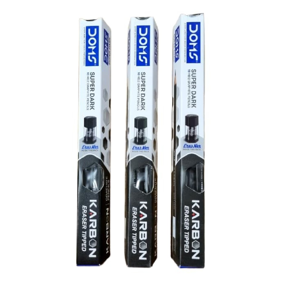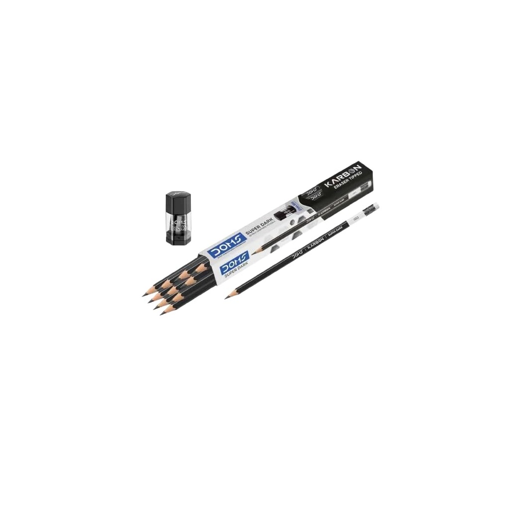 Doms Karbon Eraser Tipped Super Dark HB/2 Graphite Pencils| Pack of 10 Pencils| Includes Sharpners & Erasers| Smooth Writing| Daily Use in School & Home
